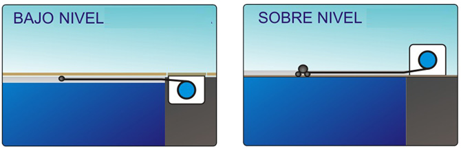Todas nuestras cubiertas estan equipadas con una bomba especialmente diseñada para cubiertas de piscina. Esta bomba desagota automaticamente el agua de lluvia que pueda acumularse sobre la misma.