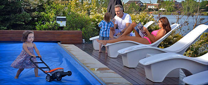 Cada año niños y mascotas sufren accidentes fatales al caer a las aguas de piscinas sin la debida cobertura. Instalando nuestro sistema cubre piscinas usted podrá disfrutar de su piscina sin preocupaciones ya que cuando no este en uso, la misma queda totalmente cubierta y ante un eventual descuido, el cubre piscinas soportará el peso de uno o más niños o adultos.