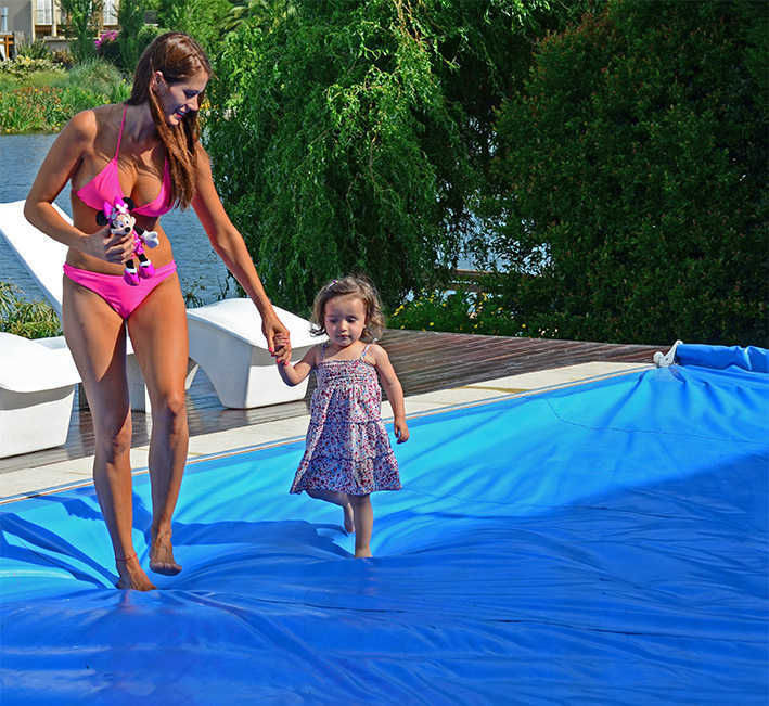 En caso de una caida accidental sobre el cubre piscinas, este soportará sin ningun problema el peso de adultos, niños o mascotas.