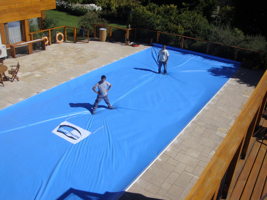 La cubierta de piscina Cubrepiscina es una manta termica, porque evita la perdida de calor, una cubierta de invierno, ya que al cerrarse al final de la temporada mantiene el agua limpia hasta el proximo verano y una cubierta de seguridad, por su facilidad de uso es la mas segura del mercado.
