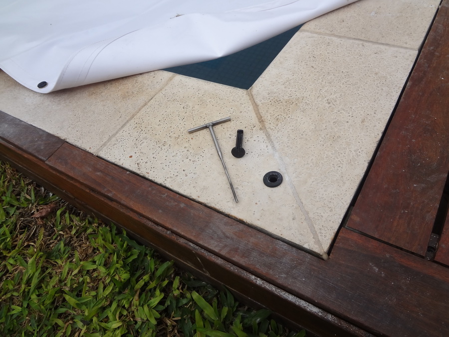 Todas nuestras cubiertas estan equipadas con una bomba especialmente diseñada para cubiertas de piscina. Esta bomba desagota automaticamente el agua de lluvia que pueda acumularse sobre la misma.