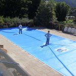 El cubrepiscina mantiene limpia su piscina protegiendola del polvo del ambiente, de la caida de hojas, ramas y otros insectos que enturbian y contaminan el agua.